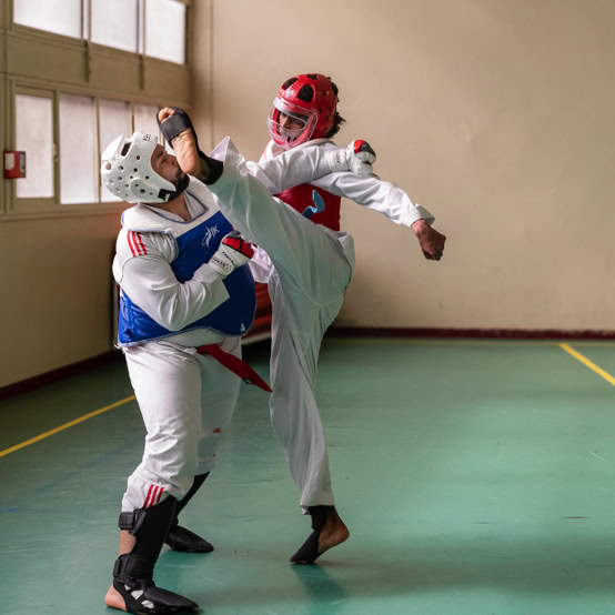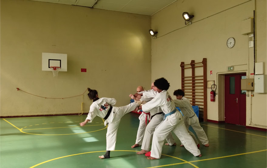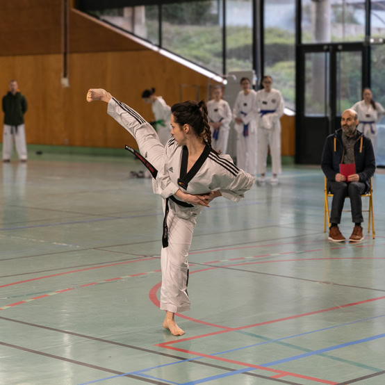 Art martial redoutable, le Taekwondo, dont le nom signifie « la voie du pied et du poing » propose une combinaison de techniques qui rassemblent les combats, les poomsae (enchaînements de techniques), la self-defense, les kibon (techniques de base).